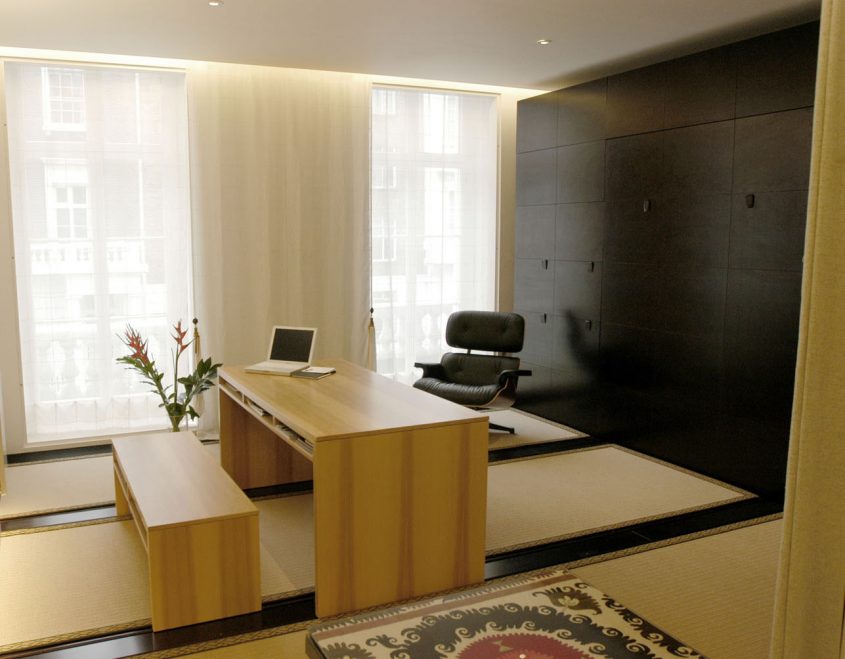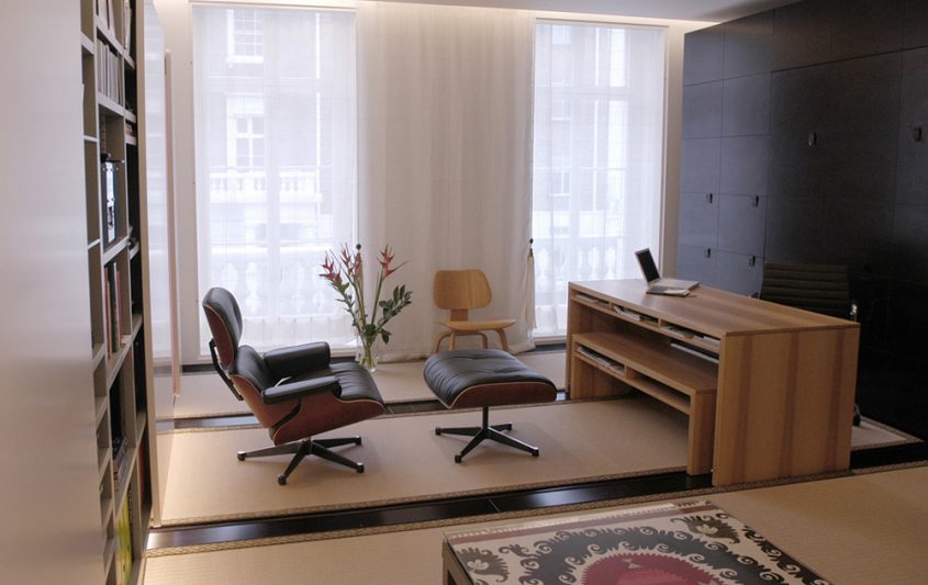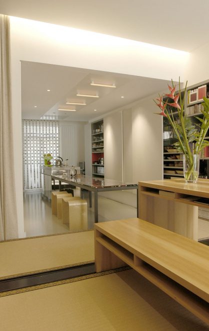 The design for a “pied a terre” micro-apartment in central London was devised as a flexible live-work space and was inspired by traditional Japanese shoji screens that are able to easily transform spaces and allow functions to change with ease.