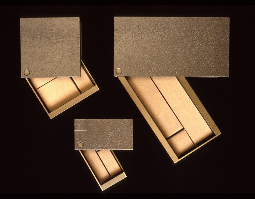 Jewellery case design for the exclusive range of Damiani’s products. Based on a jeweller’s loupe, these cases open and closed by pivoting from the corner and is made from a combination of anodised aluminium extrusions, silk wrapped vacuum forming and leather book binding. The materials reflect those used in Damiani shops designed by Antonio Citterio.