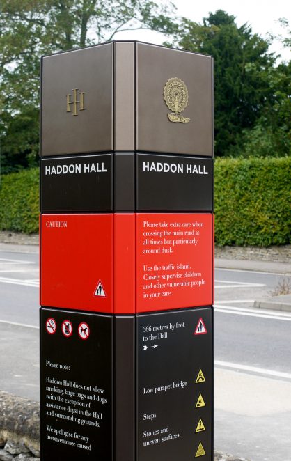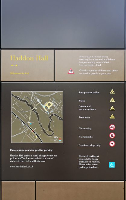 A extensive range of signage for Haddon Hall, a medieval stately home in Derbyshire. The family of elements uses materiality to stitch seamlessly into the environment without appearing jarring, instead respectful and reassuring.